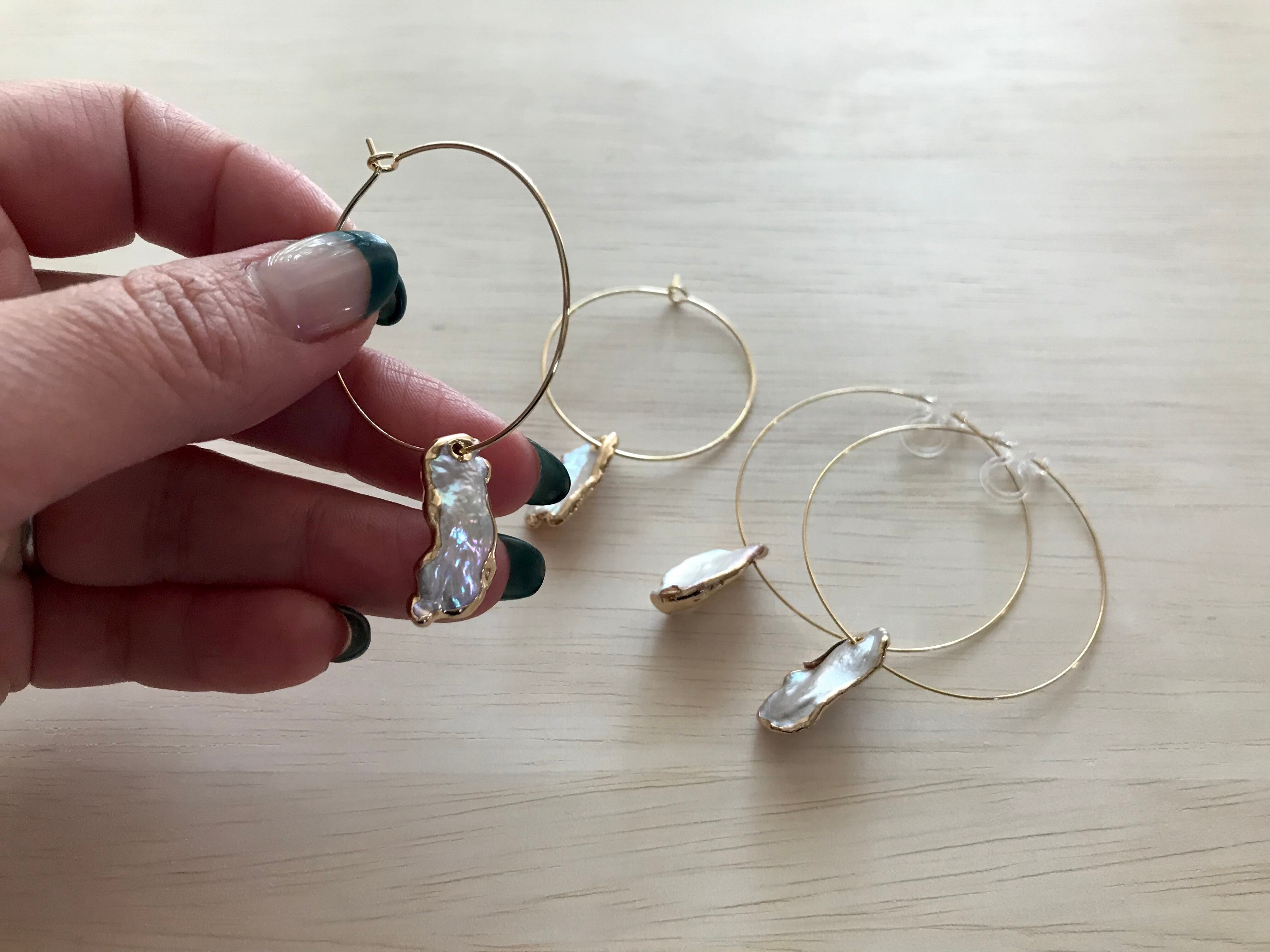 18kコーティングされたfoopと大粒の淡水perlを組み合わせました pierce foop size 35mm earring foop size 44mm