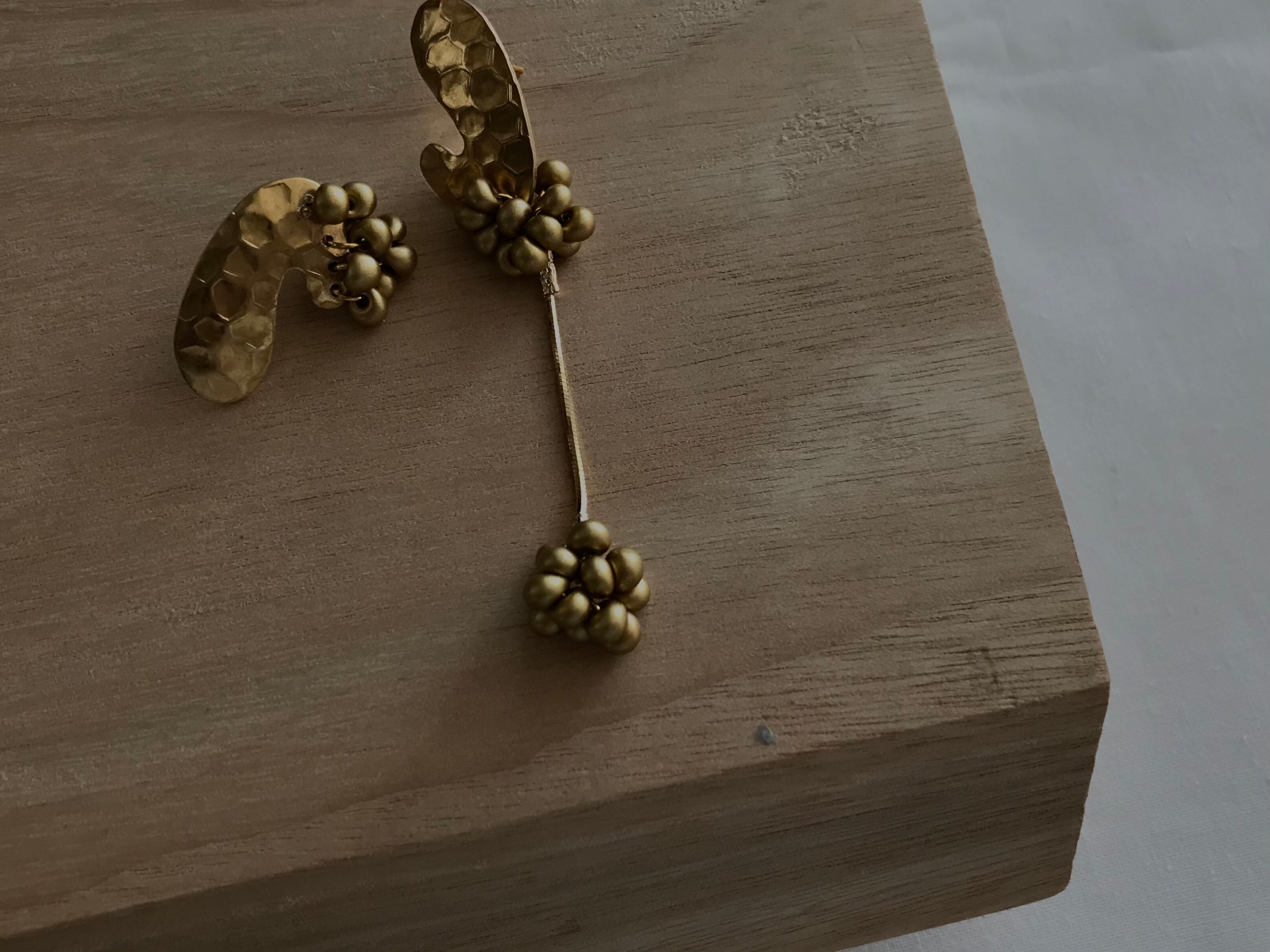 アシンメトリーが可愛いデザイン。 真鍮でお創りしていますので大人っぽくご着用頂けます♡ size..全長約7cm(大) 約2.5cw(小) ※コロナ禍の影響により一部物流に遅延が生じています。 最大発送まで14日お日にちをいただく場合がございますのでご了承下さい
